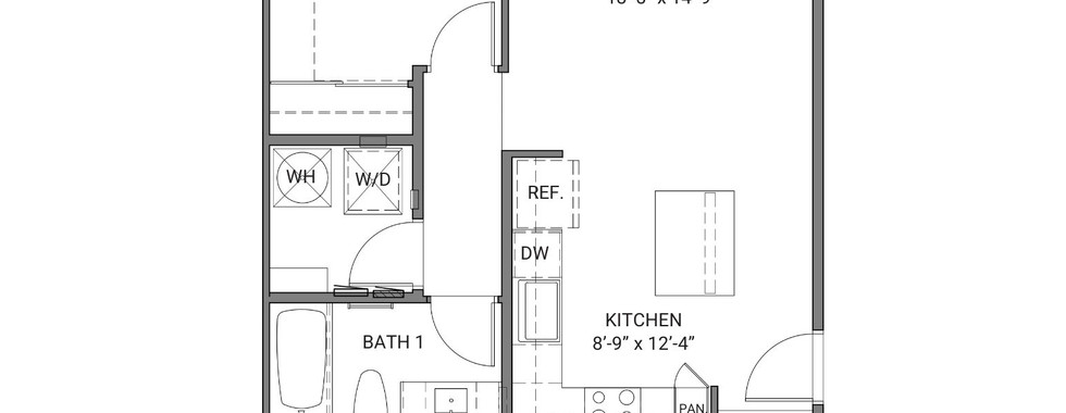 Plan H11B – 1 bedroom, 1 bathroom, 653 sq ft